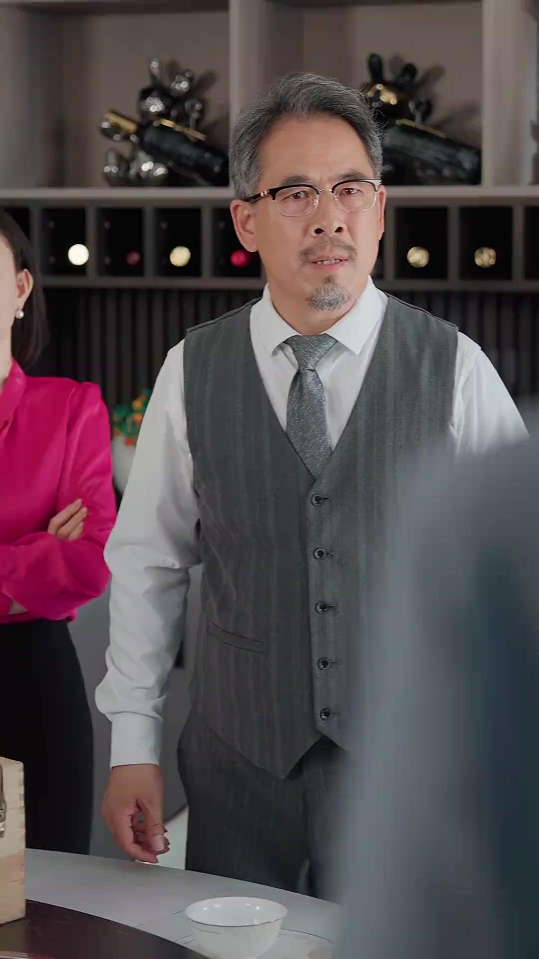 Li Wei’s final gesture is the most telling. He points again—but this time, his hand wavers. Just a fraction. Enough. His voice (still unheard) cracks—not with emotion, but with effort. He’s clinging to authority, but the foundation is shifting. Behind him, the wine rack blurs slightly, as if the room itself is losing focus. *Through the Storm* excels at these visual metaphors: the still wine, the unopened door in the background, the floral arrangement wilting just out of frame. Everything is decaying, slowly, elegantly, inevitably.