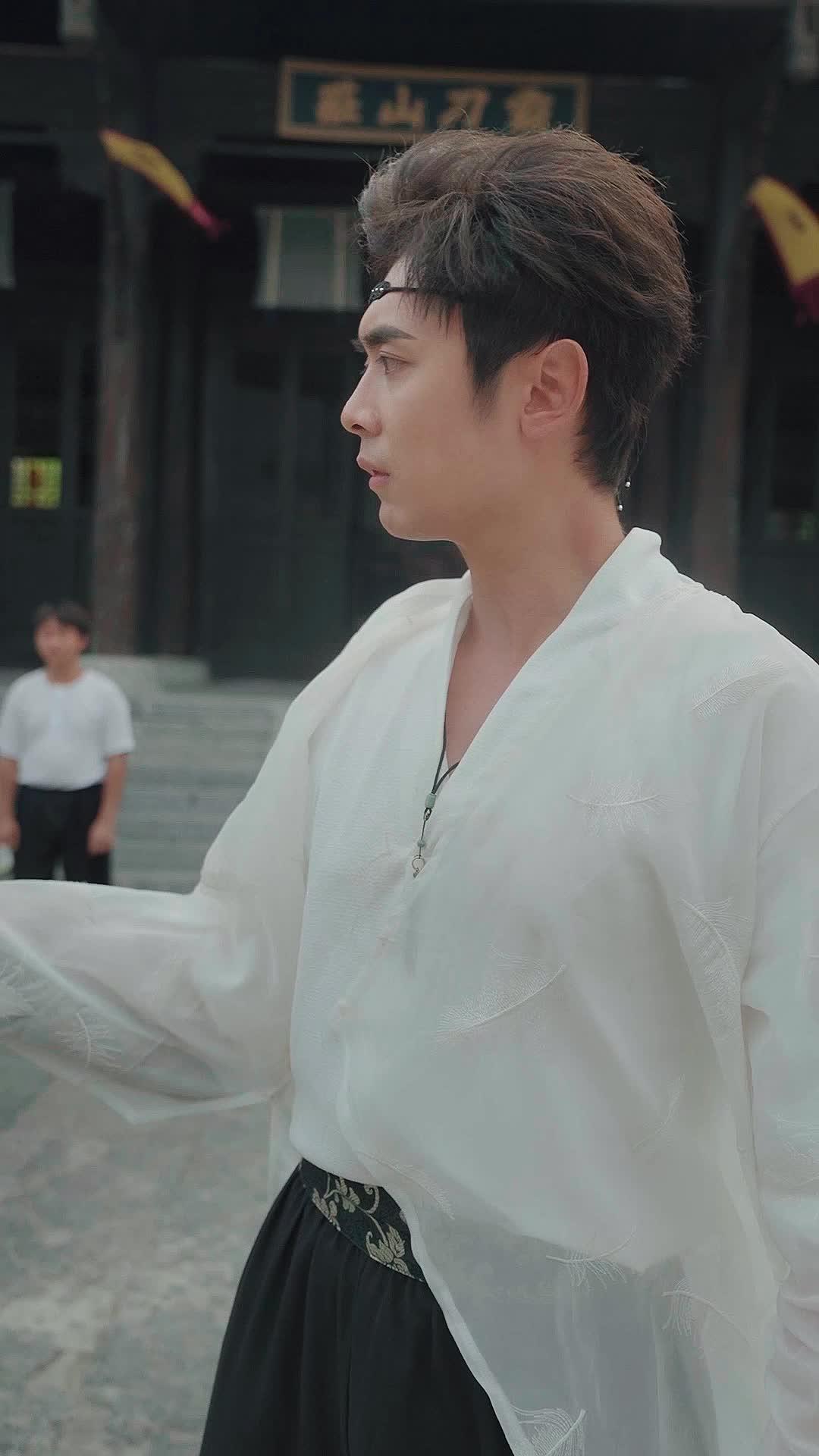 In the courtyard of what appears to be an ancient martial arts academy—its tiled roof curling like a dragon’s spine, its stone floor worn smooth by generations of footfalls—the air hums with tension not of battle, but of *unspoken history*. This is not a fight scene in the conventional sense; it is a ritual of confrontation, where every gesture, every glance, carries the weight of lineage, betrayal, and the unbearable burden of legacy. At the center stands Li Wei, the young man in white silk, his hair tousled as if he’s just awakened from a dream he didn’t ask for. His robe is translucent, almost ethereal, yet his grip on the jade-and-gold sword—its hilt carved with coiling dragons, its blade shimmering faintly with an inner light—is iron-clad. He does not speak. Not once. His silence is not weakness; it is a fortress. When he lifts the sword, eyes closed, lips parted in quiet concentration, the camera lingers—not on the weapon, but on the tremor in his wrist, the slight dilation of his pupils. He is not wielding steel; he is channeling memory. The sword, we learn through subtle visual cues—the way the light catches the patina on its scabbard, the faint etching of characters near the guard—is no ordinary heirloom. It is *the* artifact referenced in the title: To Forge the Best Weapon. Not forged in fire, but in sacrifice. In blood. In silence.