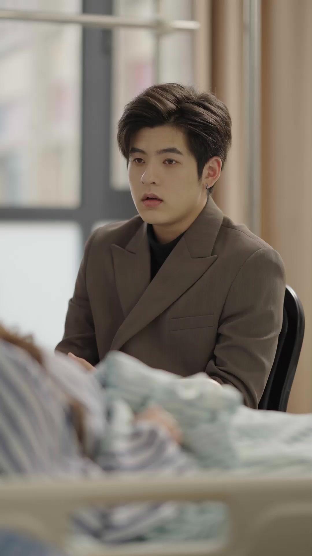 The first figure we meet is Li Zeyu—sharp jawline, tailored brown blazer over a black turtleneck, hair perfectly tousled yet disciplined, an earring glinting like a secret he refuses to share. He sits beside the bed, posture rigid, eyes fixed on the woman lying beneath the green-and-white striped covers. His expression shifts like weather over a mountain range: concern, then doubt, then something colder—resignation? Regret? It’s not the look of a man who’s just arrived; it’s the look of someone who’s been holding his breath for days. When he speaks—though we don’t hear the words—the movement of his lips is precise, almost rehearsed. His fingers rest lightly on the edge of the blanket, not touching her, not withdrawing. A gesture of restraint. A man used to controlling outcomes, now trapped in the one arena where control is an illusion: human vulnerability. And yet, there’s no anger in him—not yet. Only a deep, weary attentiveness, as if he’s trying to decode her silence like a cipher only she holds the key to.