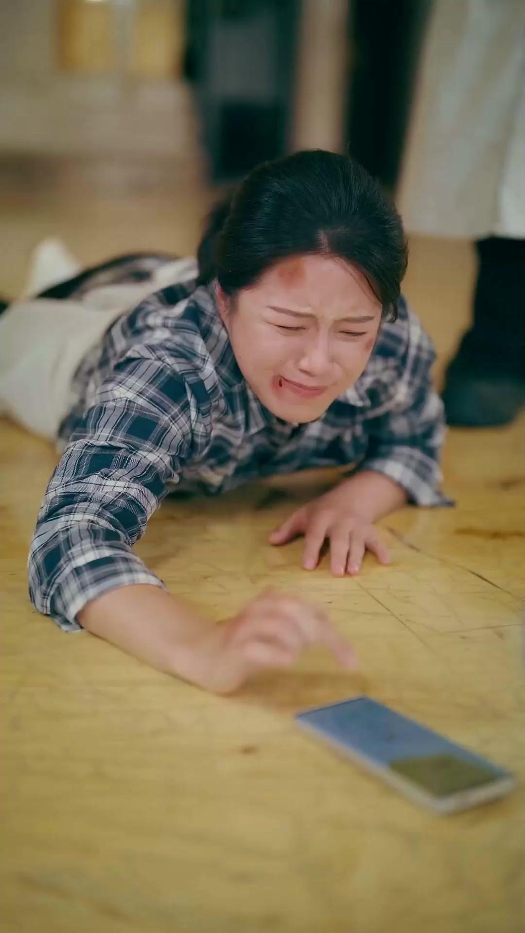 Let’s talk about the kind of scene that doesn’t just linger—it haunts. In *Veggie Husby Woke Up A Billionaire*, we’re dropped into a gilded hall where marble floors gleam like frozen lakes, chandeliers drip light like crystal tears, and human dignity is treated like disposable napkins. The protagonist—let’s call her Lin Mei, though the script never names her outright—is sprawled on the floor, face bruised, knuckles raw, blood smearing the polished surface like a failed signature. Her plaid shirt, once practical, now looks like a costume for someone who forgot they were no longer playing dress-up in a working-class kitchen. She reaches for her phone—not to call 911, not to scream for help, but to answer a call from ‘Uncle Guo’, as if salvation might arrive via voicemail. The screen flashes: incoming call, 18:56, wallpaper a white rabbit staring blankly into the void. That rabbit isn’t innocent. It’s watching. And so are we.