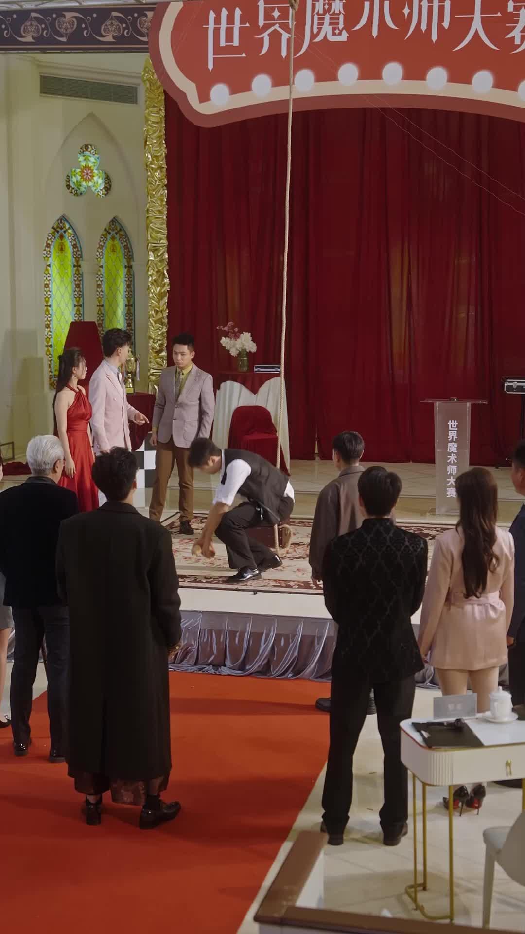 In the grand, cathedral-like hall draped in crimson velvet and gilded arches, where stained-glass windows cast fractured light onto a floral rug and a single rope dangles ominously from the ceiling like a forgotten gallows, Veiled Justice unfolds not as a courtroom drama but as a psychological séance—where every gesture, every glance, every fruit held too long becomes a confession. The setting is unmistakably theatrical: the banner overhead reads ‘World Magician Championship’ in bold Chinese characters, yet the tension on stage feels less like performance and more like reckoning. This isn’t about sleight of hand—it’s about the weight of silence, the tremor in a wrist when truth inches closer than comfort allows.