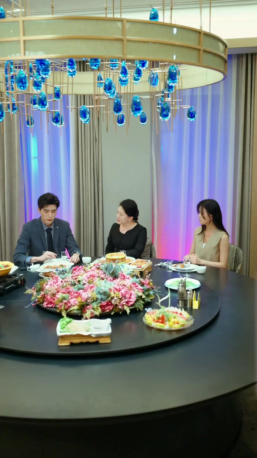 There’s a specific kind of dread that settles in your chest when you realize you’re about to be judged—not by strangers, but by the people who already hold the keys to your future. That’s the atmosphere in the opening minutes of You Are My Evermore, where Qiao Lian sits at a circular table like a defendant awaiting sentencing. The setting is luxurious, yes—marble walls, ambient lighting that shifts from lavender to indigo like mood rings, a centerpiece of artificial flowers so vivid they seem to pulse with suppressed emotion—but none of it masks the truth: this is an audition. Not for a job. For a life. Madame Lin, seated across from Qiao Lian, doesn’t fidget. She doesn’t glance at her phone. She simply *observes*, her gaze steady, her posture regal, her red lipstick a stark contrast to the black dress that hugs her frame like armor. Every movement is calibrated: the way she lifts her teacup, the slight tilt of her head when Shen Yifan speaks, the way her fingers rest atop Qiao Lian’s hand—not comforting, but *assessing*, as if testing the texture of her resolve. Qiao Lian, meanwhile, wears her composure like a borrowed coat—too large, slightly ill-fitting. Her eyes dart downward whenever Madame Lin’s voice rises, not in fear, but in the instinctive recoil of someone who’s learned that speaking up often invites more scrutiny, not less. Shen Yifan sits between them, a bridge no one has asked him to be. His suit is immaculate, his watch expensive, his expression neutral—but his foot taps beneath the table. A tiny betrayal. He’s not as calm as he pretends.